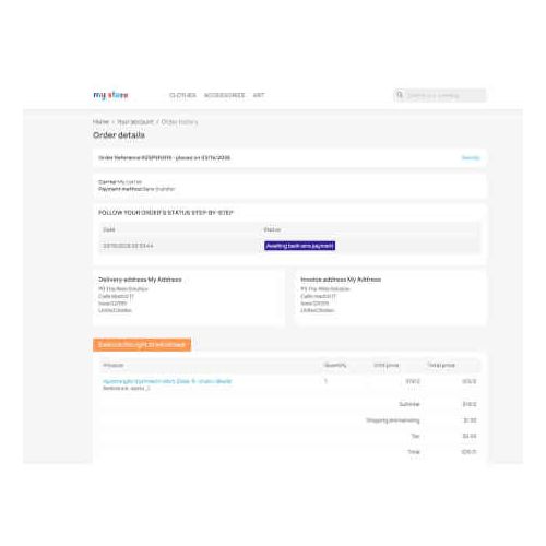 El módulo PS Mandatory Withdrawal Button implementa una función digital que permite a los clientes ejercer fácilmente su derecho de desistimiento directamente desde su área personal en la tienda, tal como exige la Directiva 2023/2673 sobre el desistimiento de contratos en línea.